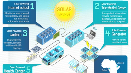 The Solar Powered Internet Schools revolutionise students’ learning and become community Internet centres and e-government access points after school hours ; entrepreneurs are able to use the admin facilities to gather information and trade more effectively ; the Health Centres double as clinics and healthcare education hubs ; and the Solar Power Generators generate additional power to the Digital Village.
