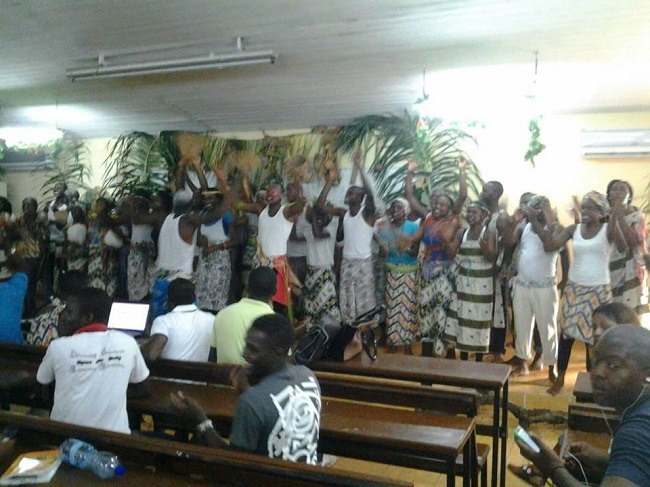 « Retour aux sources », c’est le thème choisi par le département d’Histoire et de Géographie de l’Ecole normale supérieure (ENS) pour animer sa Journée culturelle. Les élèves professeurs du département ont été les principaux acteurs de la scène de leur amphithéâtre. A la demande de Rufin Didzambou, enseignant à l’ENS, les élèves professeurs ont réalisé une pièce, symbole du retour aux sources.