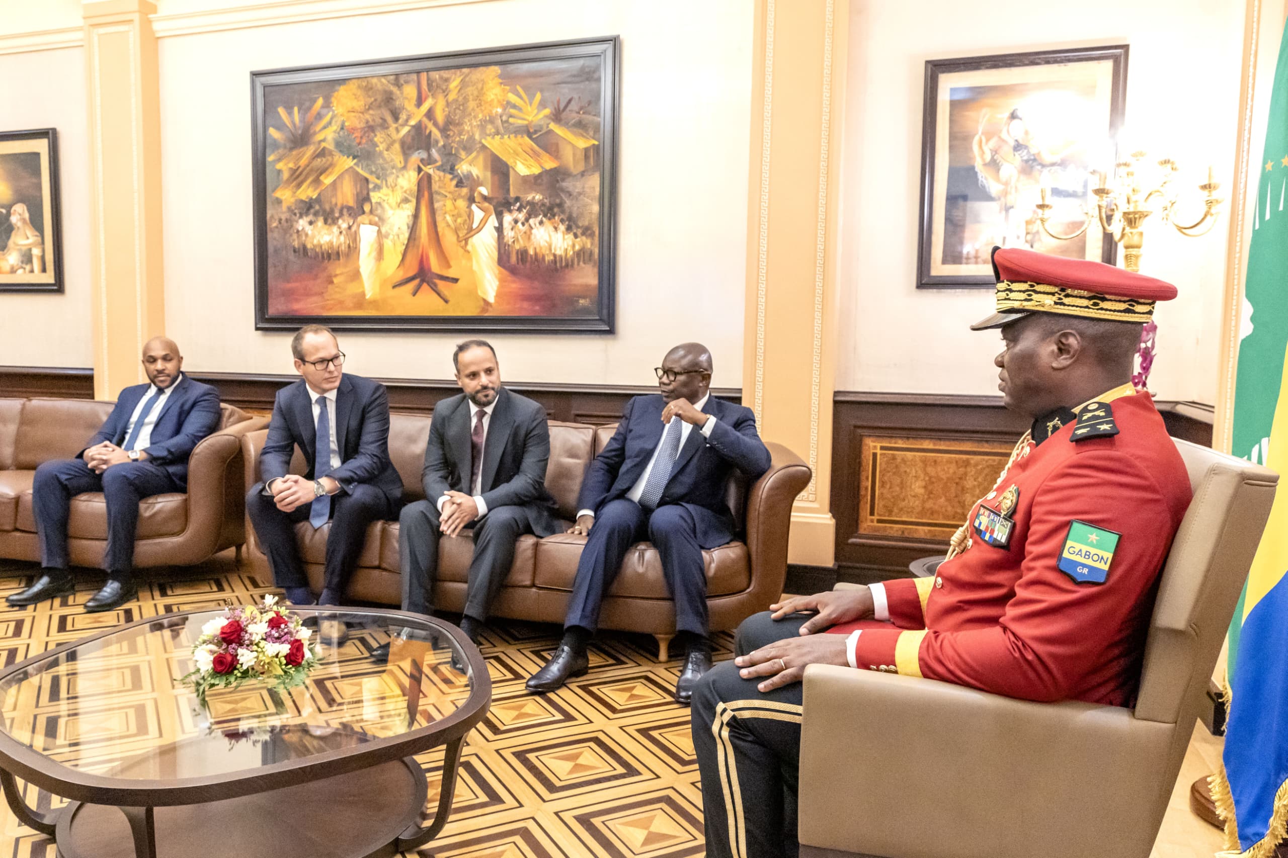 Libreville, le 15 février 2024-Le Président de la Transition, Président de la République, Chef de l’Etat, le Général Brice Clotaire Oligui Nguema a reçu ce jour en audience messieurs Mao Dag Dag et Guillaume Letessier respectivement Directeur Général de l’entreprise Vakana et Responsable la société Gunvor, qu’accompagnait monsieur Pierre Claver Maganga Moussavou.