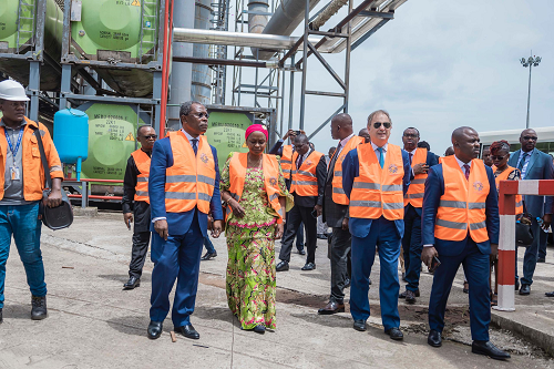 La délégation a pu apprécier la visite de la société Tropical Forest Products spécialisée dans la fabrication des panneaux de particules de bois à partir des déchets de la grume. Ces panneaux sont utilisés dans les domaines de la construction et de l’ameublement,