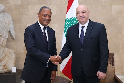 Son Excellence le Général Joseph Aoun, Président de la République Libanaise, a accordé une audience à Pascal Ogowe Siffon, Ministre du Tourisme et de l’Artisanat de la (...)