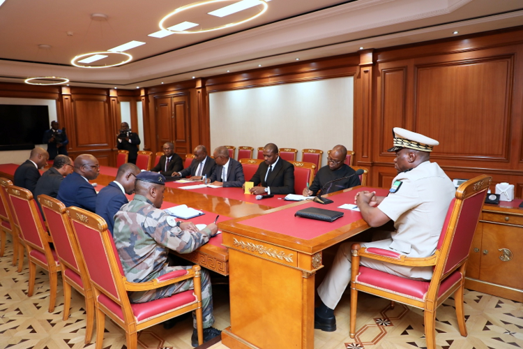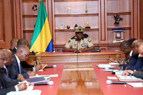 Général Brice Clotaire Oligui Nguema a échangé ce jour avec Monsieur Carlos Maxime Mevi, Directeur général d’Orabank qu’accompagnaient messieurs Ludovic Megne Ndong et Mays Mouissi, respectivement ministres de l’Habitat, de l‘Urbanisme, du Cadastre, et de l’Economie et des participations.