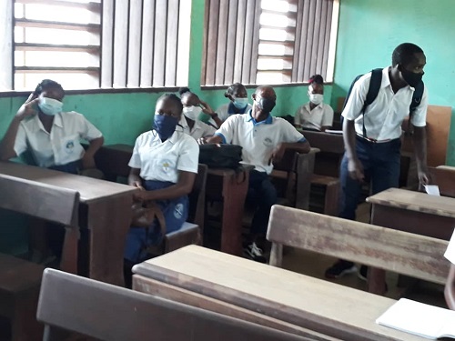La rentrée des classes est effective au Lycée Jean Arsène Bouguendza Le proviseur de cet établissement, Dieudonné Boukala mise sur l’obligation des résultats. Il ne veut pas perdre du temps et en profite pour donner son premier cours de l’année. Mais bien avant, il a été question pour lui, de sensibiliser les apprenants sur la question de la pandémie à coronavirus. Il a rappelé aux uns et aux autres la nécessité du « port du masque obligatoire par les professeurs et les élèves, de la distanciation physique à respecter ». Il a fait savoir également présence des gels hydro-alcooliques et une cuve pour le lavage des mains.