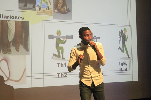 Au final, Bedrich Pongui Ngondza a pu séduire le public, et le jury en particulier, composé d’enseignants chercheurs et une professionnelle de l’information qui lui a attribué une note de 16/20 en moins de 180 secondes avec sa thèse intitulée : « Paludisme, schistosomose et filarioses négligées (Loaose et Mansonellose) chez les personnes infectées par le VIH vivant au Gabon : impact sur la santé globale ».