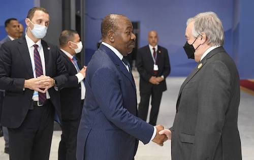 Sharm El Sheikh – le 07 novembre 2022-En séjour à Sharm El Sheikh en Egypte dans le cadre de la tenue de la 27ème Conférence des Parties à la Convention-Cadre des Nations Unies sur les Changements Climatiques (COP 27), le Président de la République S.E Ali Bongo Ondimba a prononcé une allocution lors de l’ouverture de la Session de Haut niveau des Chefs d’Etat et de Gouvernement.