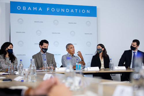 Le Directeur Général de la Société Équatoriale des Mines, Elvis Ossindji et la jeune gabonaise Claude Marie Andtoungou ont participé à une table ronde avec le Président (...)