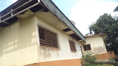 De l’intérieur, cela saute aux yeux de tout visiteur. Le plafond est défoncé de partout, l’eau suinte au mur à chaque averse, parfois ils ont les problèmes d’eau, d’électricité, dans la salle de réunions. C’est le vide, pas de chaises ni de banquette dont la plupart cassées sont déjà rangées dans un coin.