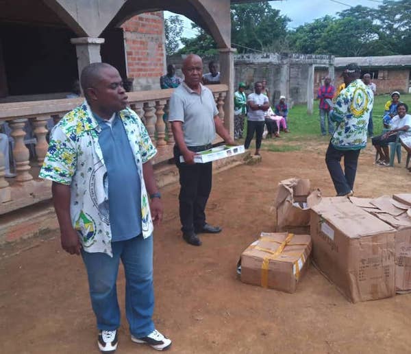 Pendant cette tournée, les quartiers de la commune de Minvoul non éclairés ont reçu des mains du membre du bureau politique(MBP ), des lampadaires solaires et plusieurs autres dons.