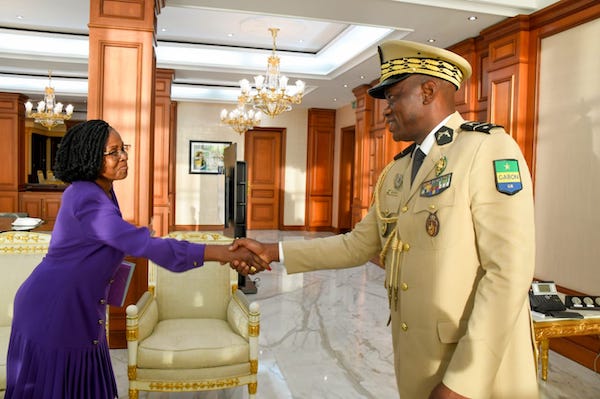 Libreville, le 25 Septembre 2023-Le Général Brice Clotaire Oligui Nguema, Président de la Transition, Chef de l’Etat a reçu ce jour en audience mesdames Solange Marthe Guiakie et Patricia Djipano épouse Mouloungui respectivement ministre du Travail et de la Lutte contre le Chômage et ministre du Commerce, des PME/PMI chargé des Activités Génératrices de Revenus.