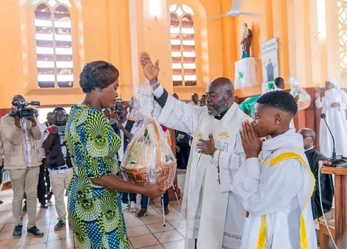 La paroisse Saint François Xavier, créée il y a 143 ans, a été officiellement consacrée en 1898. Le Père John, curé de la paroisse, a sollicité le couple présidentiel pour la réalisation de travaux de réfection. S’exprimant au nom du Chef de l’État, M. Rossatanga, Secrétaire général de la Présidence de la République Gabonaise, s’est dit honoré et a remercié le clergé paroissial.