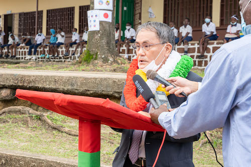L’Ambassadeur du Japon Shuji Noguchi et Rolande Moubouassi Nziengui , Directrice de l’Ecole Publique d’Akébé 1/A ont procédé le 09 décembre 2021 à la cérémonie de remise de don pour « Le Projet de Réhabilitation de l’Ecole Publique d’Akébé 1/A » financé par le Japon pour un montant de 77.673 € soit près de 51 millions de Francs CFA dans le cadre du programme de coopération bilatérale dénommé les « Dons aux micro-projets locaux contribuant à la sécurité humaine ».