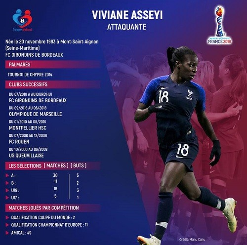 Née à Mont Saint-Aignan en Normandie, Viviane Asseyi est une jeune footballeuse d’origine gabonaise qui a été sélectionnée par Corinne Diacre pour participer au mondial de (...)