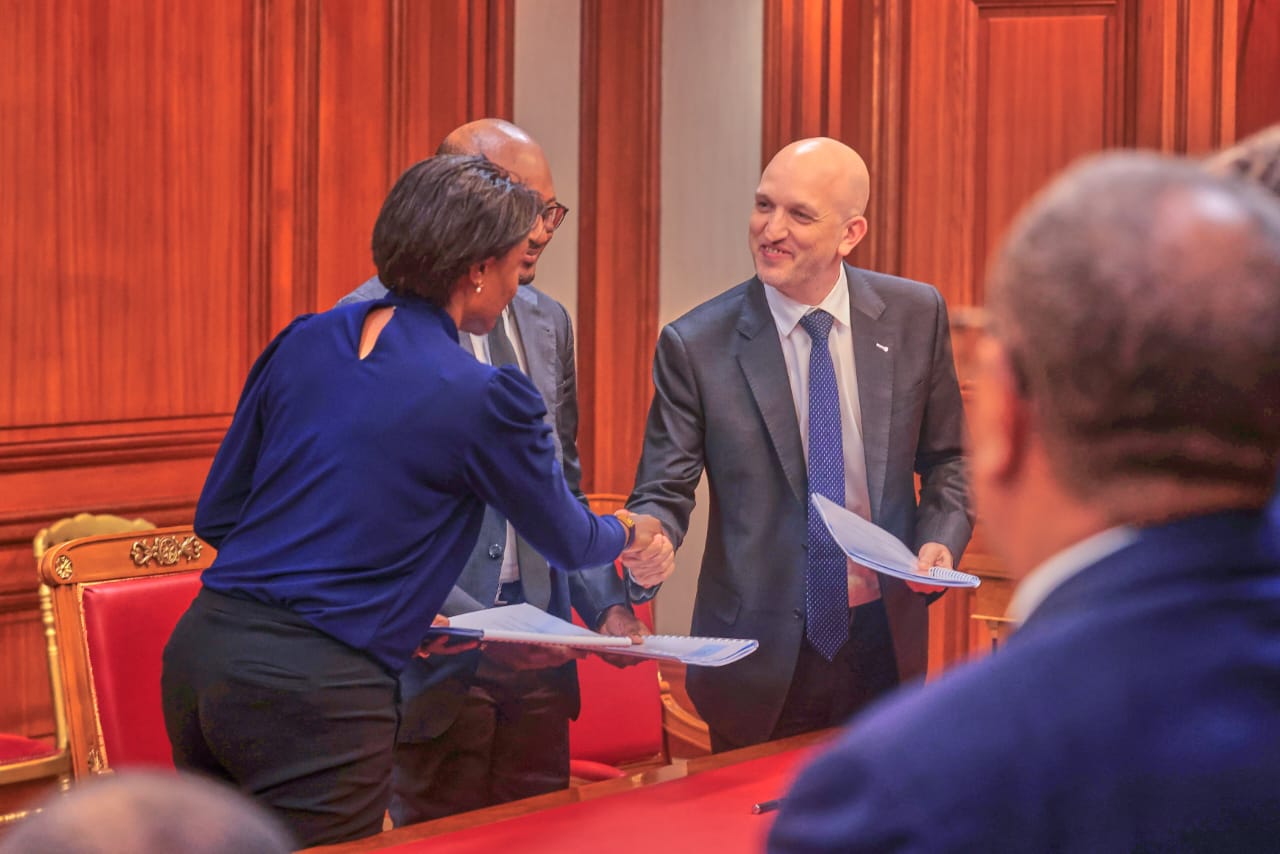 Libreville , le 12 mars 2024-Le Président de la Transition, Président de la République, Chef de l’Etat, le Général Brice Clotaire Oligui Nguema a dirigé ce jour la cérémonie de signature de convention entre Afrijet et l’État gabonais via la société Fly Air Gabon Holding, en présence de son Directeur général madame Linda Binta Mandji epse Lespinas.