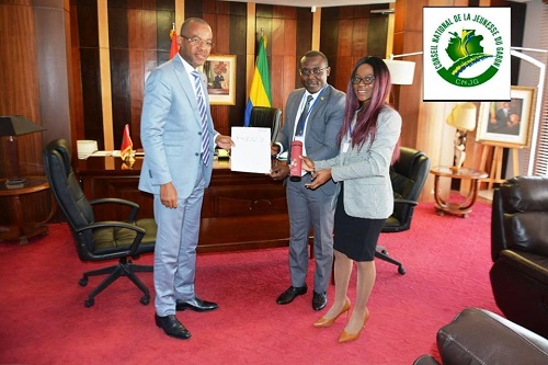 La Secrétaire Générale du Conseil National de la Jeunesse Gabonaise, Claude Marie Andtoungou, a rendu une visite de courtoisie ce matin à l’ambassadeur du Gabon au Maroc, son excellence Sylver Aboubakar Minko Mi-Nseme. Occasion pour elle, de faire la restitution de la ’’8ième édition du Sommet Des Étudiants et de la Jeunesse d’Afrique’’, Sommet Co organisé par l’Agence de Coopération Marocaine Internationale (AMCI) et l’Union Panafricaine des Étudiants (AASU), qui vient de s’achever à rabat. Claude Marie a également présenté, à son excellence monsieur l’ambassadeur, la situation des étudiants boursiers gabonais au Maroc, le cas récent de l’étudiante expulsée de son établissement pour cause d’impayés de l’Agence Nationale des Bourses du Gabon.
