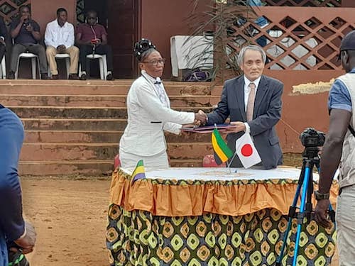 La cérémonie qui s’est tenue dans la matinée dans la ville du Grand Blanc a vu la présence de l’ambassadeur du Japon, Shuji Noguchi et de plusieurs autres responsables administratifs et politiques de la capitale migovéenne venus assister à la matérialisation du contrat de don concernant la rénovation de l’école privée protestante d’Adouma, son extension pour trois salles de classe de pré-primaire, un plateau sportif et des lieux d’aisance pour les élèves.