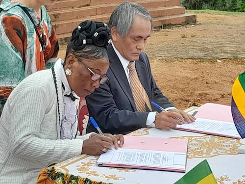 Le Ministre de la Justice, Garde des Sceaux, Paul-Marie Gondjout par ailleurs fils de la localité, a présidé le vendredi 07 mars 2025 à Lambaréné, la cérémonie de signature d’un contrat de don du Japon à l’Enseignement privé protestant. Le principal bénéficiaire est l’école privée protestante d’Adouma. L’établissement sera rénové en plus de son extension et de la construction d’un plateau sportif.
