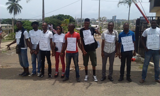 Ce vendredi 06 mars, une ambiance particulière se dégageait autour du portail de l’entrée de la principale université du pays, pour preuve des étudiants y étaient debout, unis et formant une chaine. Cette mobilisation qui contraste avec l’absence de cours et le gel des enseignements perpétrés par les enseignants membres de la dynamique unitaire étaient une réponse « non violente au silence des autorités et de la communauté nationale qui ne s’émeut aucunement face à la situation de l’Ecole gabonaise qui dépérit chaque jour. »