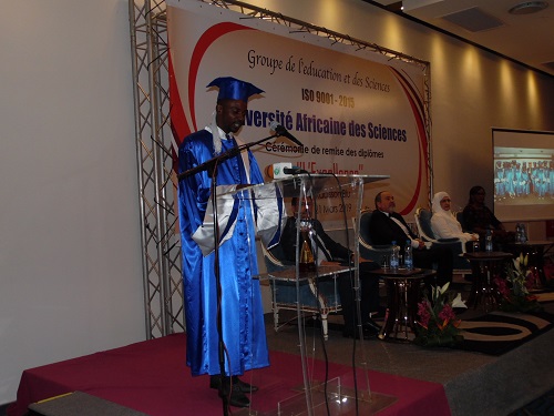 Un cadre adéquat et des enseignements de qualité, l’Université Africaine des Sciences(UAS) compte en son sein une trentaine de nationalités. Le Professeur Mahmoud Zouhoui a tenu à féliciter tous les heureux impétrants. Il n’a eu de cesse de tarir les étudiants gabonais d’éloges. « J’ai été réellement satisfait et heureux par leur niveau intellectuel, leur ouverture d’esprit, leur discipline et leur politesse. J’ai pu desceller en eux, le désir d’acquisition du savoir et la volonté d’une brillante réussite dans leurs études » confesse-t-il. Le volet de la qualité était aussi d’actualité dans le discours du Vice-Président de l’UAS, en charge de la qualité, le Professeur Mahmoud Zouhoui.