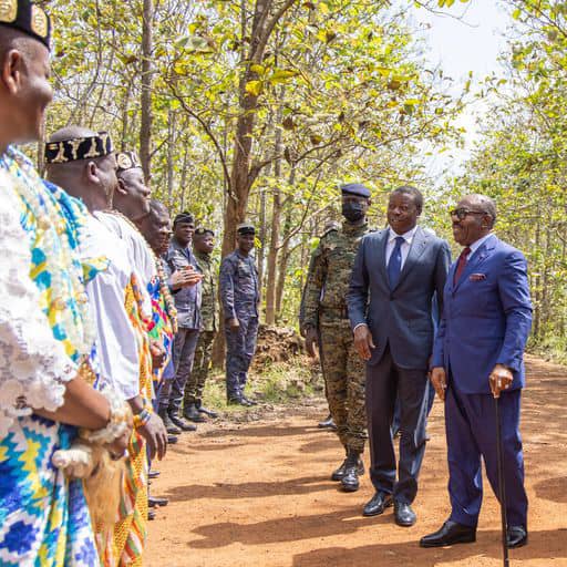 Lomé – le 1er décembre 2022-En séjour en République Togolaise dans le cadre d’une Visite de Travail, d’Amitié et d’échange d’expérience, le Président de la République, Son Excellence Ali Bongo Ondimba s’est rendu ce jour accompagné du Président de la République Togolaise, S.E. Faure Essozimna Gnassingbé à la forêt classée de Lilicopé.
