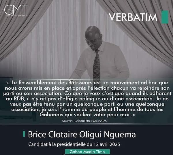 Il ne revient nullement à un membre de la coordination de proclamer la transformation de la plateforme « Le Rassemblement des Bâtisseurs » en parti politique. Une telle initiative, aux implications majeures pour la vie démocratique de notre pays, relève exclusivement de la prérogative du Président élu, Brice-Clotaire Oligui Nguema, Président fondateur légitime de ladite plateforme.