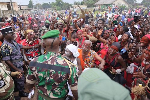 Enfin, le Président de la Transition a rencontré les populations de la localité de Gamba. Au cours de celle-ci, le Chef de l’État a reçu les symboles et attributs en sa qualité de chef de la nation, lui témoignant ainsi leur confiance.