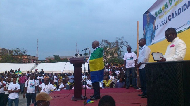 C’est une déclaration d’amour ou presque que Guy NZOUBA-NDAMA a faite au peuple Gabonais ce dimanche 12 juin 2016.L’esplanade du Lycée Ntchoréré a servi de cadre au meeting et a presque refusé du monde. Le candidat déclaré à l’élection présidentielle d’août 2016 et les siens ont animé un meeting pour appeler les Gabonais à prendre leur responsabilité. La responsabilité qui doit conduire le pays à l’alternance au sommet de l’État. Aussi, a t-il salué la détermination des Magistrats qui ont dit non à l’injustice et aux nominations qui n’honorent pas cette noble corporation.