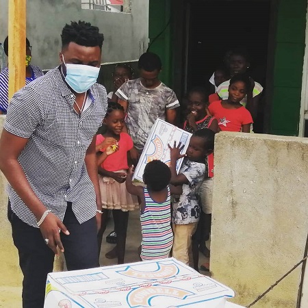 Avec mon équipe nous nous sommes rendus au centre d’ accueil EL JIREH sis à NKOK pour apporter un modeste don afin de soutenir les pensionnaires dudit centre d’ accueil en cette période de crise sanitaire liée au Covid 19》, souligne l’artiste NG-Bling.