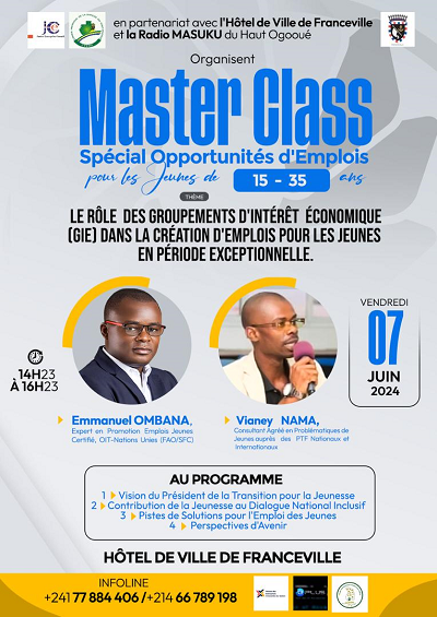 Franceville s’apprête à accueillir un Master Class Spécial "Opportunités d’Emplois pour les Jeunes"