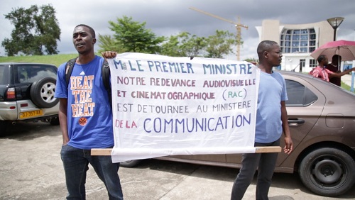 Ils sont à leur cinquième jour de grève. Ils réclament leur redevance audiovisuelle et cinématographique(RAC). C’est d’ailleurs ce qui fâche les agents de Gabon Télévision. Ils ont décidé d’offrir le service minimum. Banderole en mains, sifflets et Vouvou Zella à la bouche, on pouvait entendre les grévistes crier « Les affamés, allez manger, les affamés, allez mendier… », comme pour exprimer leur agacement à l’endroit de leurs différents dirigeants. Ces agents en colère ont aussi lancé un appel au Chef du Gouvernement. « Monsieur le Premier ministre Notre redevance audiovisuelle et cinématographique(RAC) est détournée au ministère de la Communication » peut-on lire sur une des banderoles.