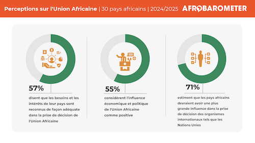 Sept Africains sur 10 soutiennent l’idée que les pays africains devraient avoir une plus grande influence dans la prise de décision des organismes internationaux tels que les (...)