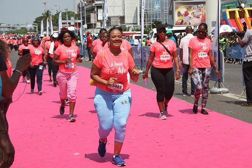 Les performances sportives individuelles n’étaient pas à rechercher dans cette course car seul le caractère symbolique était à retenir, celui de l’engagement de toutes ces mères et filles pour une cause qui concerne la femme. « Je lutte contre les cancers féminins ! » criaient-elles au moment de franchir la ligne d’arriver après avoir parcouru 5 kilomètres. Un cri de guerre qui accompagne les frais de participation à cette course qui vont d’ailleurs servir à la Fondation de la première dame dans ce combat.